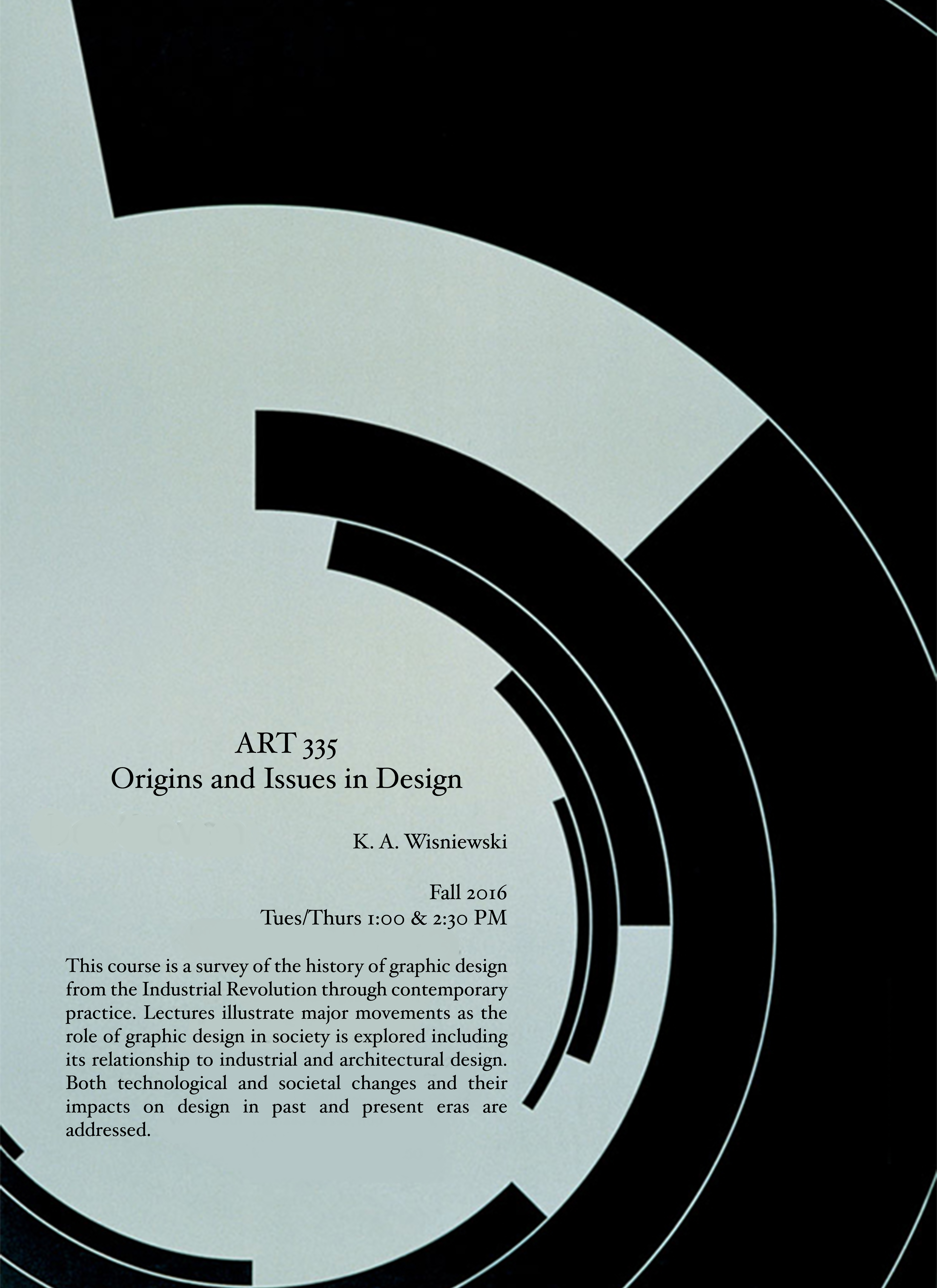 I’m offering a new course at UMBC in the fall: ART 335 “Origins & Issues in Design”.