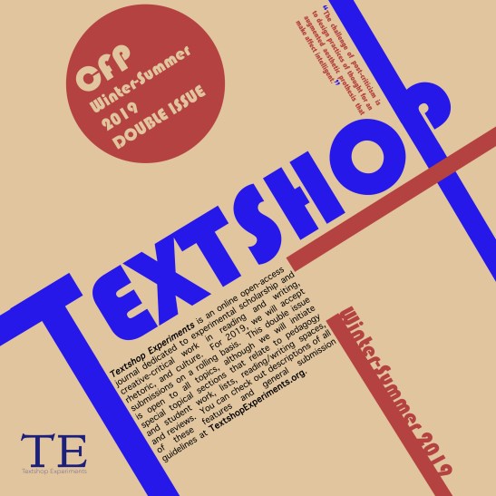 Published on February 5, 2019 at 2800 × 2800 in Call for Publications: Textshop Experiments, Spring/Summer 2019
