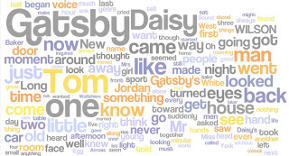 The list below is a selected list I offer my students. Some of the sites provided here offer more than quickly generated, automated results, but each is a good way to get started with more complicated software and projects. Each of the samples shown here are word clouds of F. Scott Fitzgerald’s The Great Gatsby (in its entirety). Get our there and play!