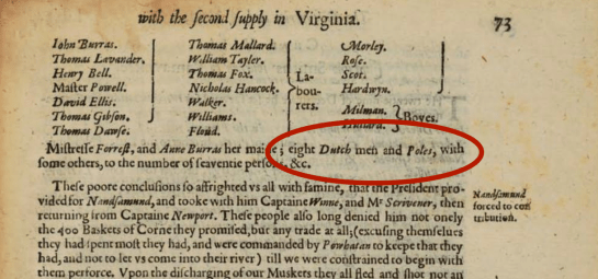 Included the list of people Smith notes arriving from the Second Supply ship are “eight Dutch men and Poles.” Although my ancestors wouldn’t arrive to America for another 300 years, I am interested in Polish history and the history of Poles in America. With this in mind, I posed the simple question, “Who were these Polish immigrants to Jamestown?”