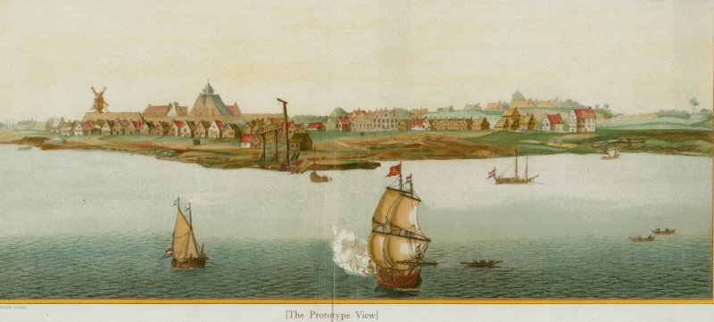 “Prototype View” of New Amsterdam date depicted: c.1651, From Phelps Stokes Iconography of Manhattan Island, 1915, New York Public Library.
