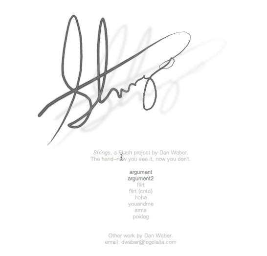 While preparing for my digital textuality lectures this semester, I stumbled across a series of video recordings from 2010–2012—artifacts of an earlier era of electronic literature. Many of the works captured in these videos no longer exist. Defunct organizations, vanished websites, and obsolete technologies have rendered them inaccessible. Among them was Dan Waber’s Strings, a mesmerizing piece of kinetic text that once thrived in the fluid space of early e-lit. Watching it now, frozen in time yet still alive on screen, I was struck by how much of digital literature is inherently ephemeral—shaped as much by its disappearance as by its presence.
