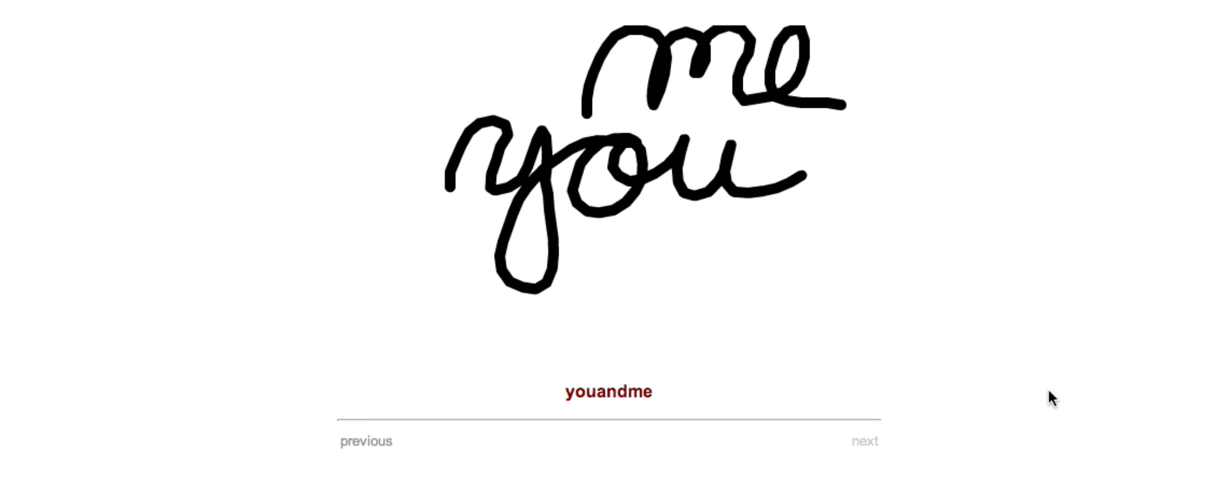 The individual poems within Strings each contributed unique interactions and thematic elements. “Argument” and “Argument2” explored the push and pull of disagreement, visually rendering the way words can strain against each other, refusing to settle into a fixed position. “Flirt” and its continuation, “Flirt (cntd)”, depicted the playful dance of courtship, where words bounced and twisted in an animated back-and-forth exchange that mirrored flirtation itself. “Haha” captured the chaotic nature of laughter, with letters spasmodically shifting and jostling as though overtaken by an uncontrollable giggle. “Youandme” used kinetic typography to explore intimacy and relational tension, enacting the closeness and distance between two entities through its fluid movement. “Arms” was a striking piece that manipulated text in a way that evoked gestures, mimicking the extension and withdrawal of physical limbs, while “Poidog” introduced a more abstract, almost whimsical interplay of text and motion, challenging traditional poetic structure through its visual storytelling.