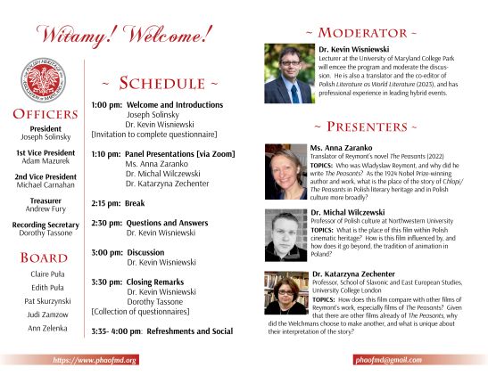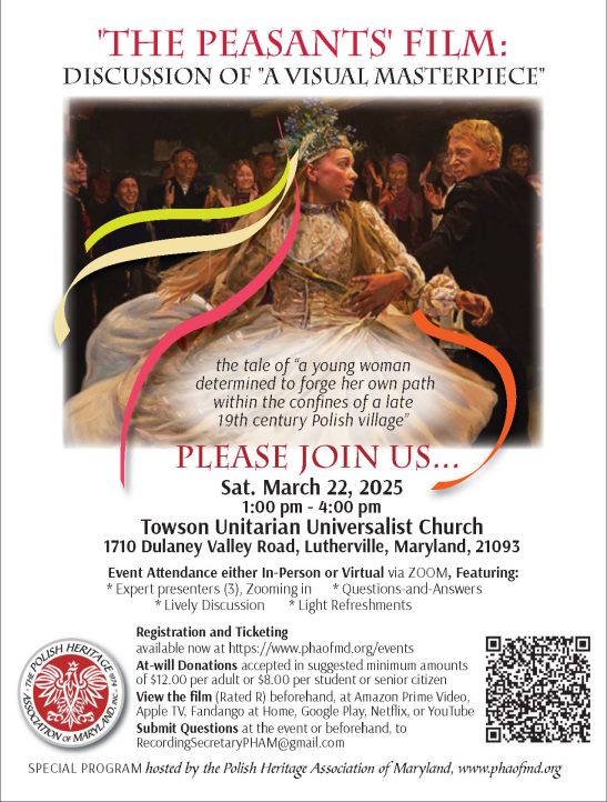 Baltimore film enthusiasts and literature lovers alike are invited to an engaging and thought-provoking event celebrating Władysław Reymont‘’s Nobel Prize-winning novel The Peasants and its stunning modern adaptation. This Saturday, March 22, 2025, the Polish Heritage Association of Maryland (PHAM) will host a hybrid panel discussion and interactive conversation at the Towson Unitarian Universalist Church. This event promises to be an insightful exploration of a film that has ignited conversation and debate among critics and audiences.